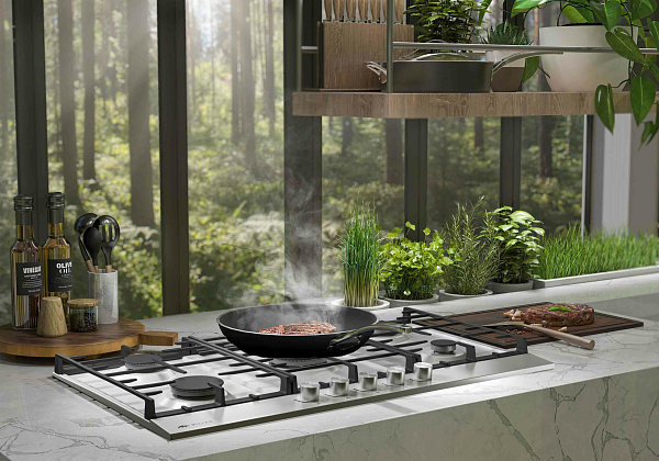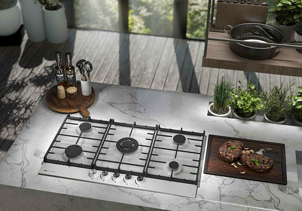 Всего рабочая поверхность разделена на пять зон подогрева. Четыре конфорки работают в обычном режиме. Они отличаются мощностью и диаметром. В центре находится WOK-конфорка, представляющая особый интерес. Она создает сразу несколько колец пламени, позволяя моментально прогревать даже самую объемную посуду. Это позволяет готовить блюда азиатской кухни в домашних условиях без особых усилий. Приятный бонус, позволяющий разнообразить стандартный рацион питания.