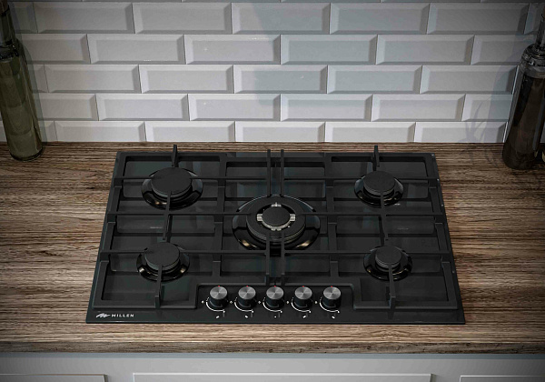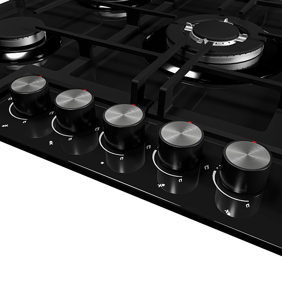 Всего рабочая поверхность делится на пять условных частей. Слева и справа располагаются по две стандартных конфорки разной мощности и диаметра. В центре находится WOK-конфорка, создающая при работе сразу несколько колец пламени. Это позволяет быстро нагревать посуду любых объемов, что открывает безграничные возможности по приготовлению новых кулинарных шедевров, например азиатской кухни.