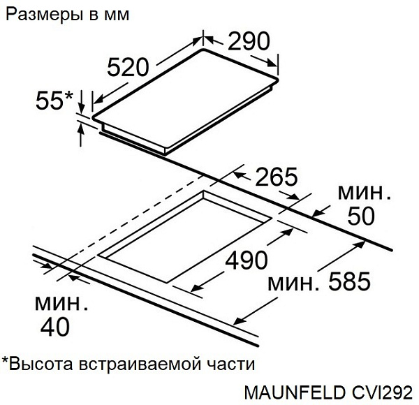 Индукционная поверхность работает за счет образовавшегося магнитного поля между катушкой, которая находится под стеклом, и посудой. При этом сама стеклокерамика нагревается за счет горячей посуды стоящей на ней. Она проста в уходе и безопасная для детей.