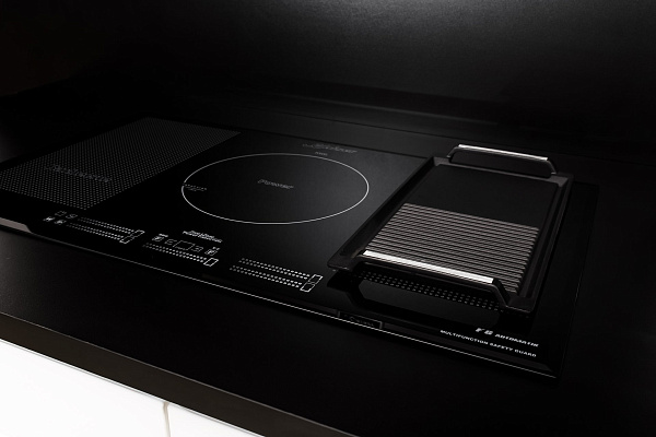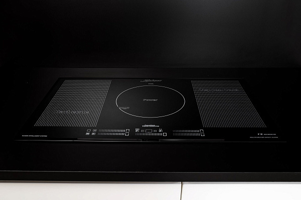 Индукционная поверхность работает за счет образовавшегося магнитного поля между катушкой, которая находится под стеклом, и посудой. При этом сама стеклокерамика нагревается за счет горячей посуды стоящей на ней. Она проста в уходе и безопасная для детей.