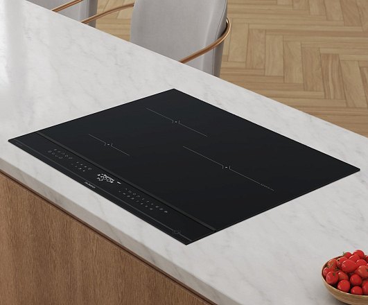 Эта модель оснащена тремя индукционными конфорками различной мощности и диаметра, что позволяет готовить разнообразные блюда одновременно, экономя время и энергию. Сенсорное управление и переключатели Touch Control обеспечивают простоту и удобство использования. Встроенный дисплей помогает контролировать процесс приготовления и настраивать нужные параметры.