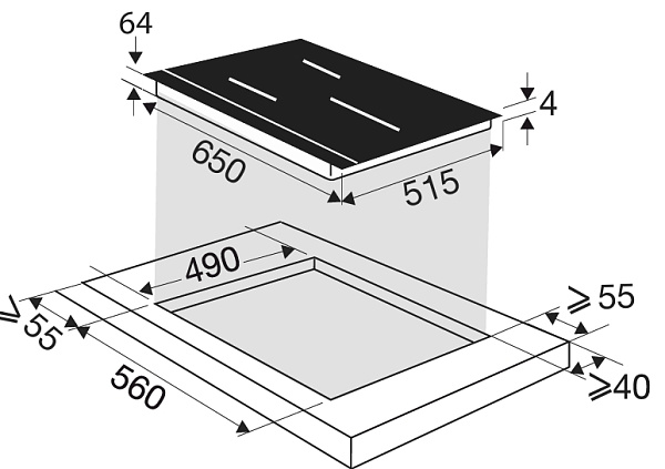 Индукционная поверхность работает за счет образовавшегося магнитного поля между катушкой, которая находится под стеклом, и посудой. При этом сама стеклокерамика нагревается за счет горячей посуды стоящей на ней. Она проста в уходе и безопасная для детей.
