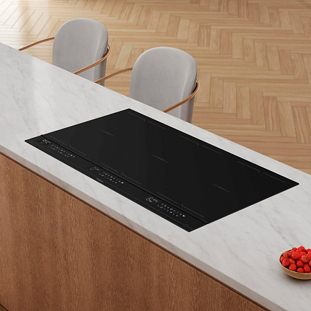 Устройство имеет 6 индукционных конфорок, подходящих для посуды различных форм и размеров. Функция определения посуды автоматически адаптирует размер зоны нагрева под соответствующую посуду, тем самым экономя время и снижая расход энергии.