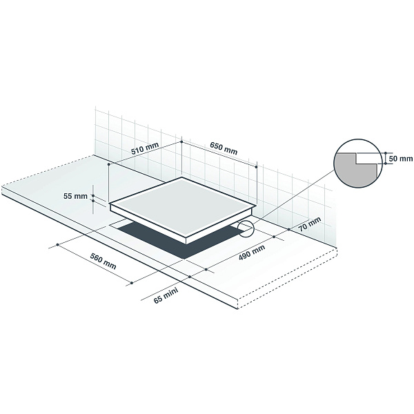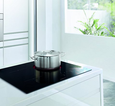 Индукционная поверхность работает за счет образовавшегося магнитного поля между катушкой, которая находится под стеклом, и посудой. При этом сама стеклокерамика нагревается за счет горячей посуды стоящей на ней. Она проста в уходе и безопасная для детей.