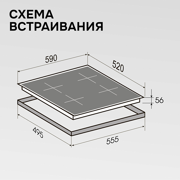Индукционная поверхность работает за счет образовавшегося магнитного поля между катушкой, которая находится под стеклом, и посудой. При этом сама стеклокерамика нагревается за счет горячей посуды стоящей на ней. Она проста в уходе и безопасная для детей.