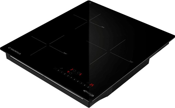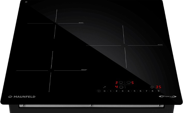 Индукционная поверхность работает за счет образовавшегося магнитного поля между катушкой, которая находится под стеклом, и посудой. При этом сама стеклокерамика нагревается за счет горячей посуды стоящей на ней. Она проста в уходе и безопасная для детей.