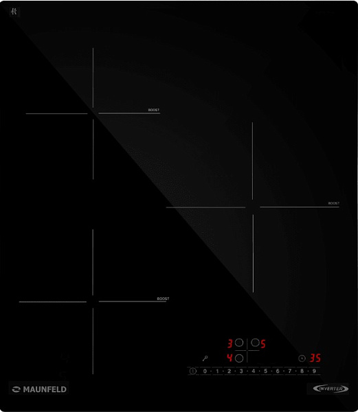 Три индукционные конфорки с функцией Booster обеспечивают быстрый и равномерный нагрев.