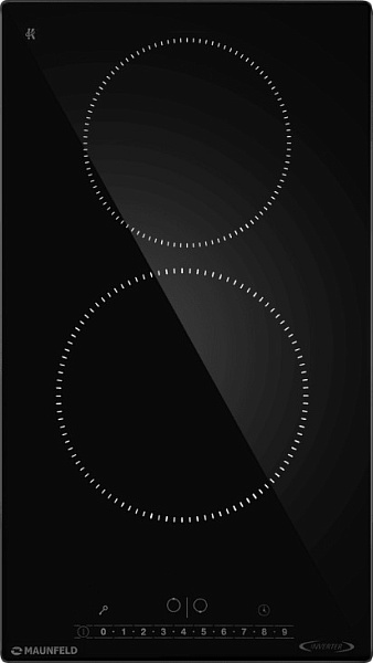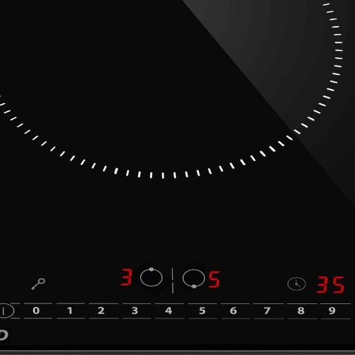 Эта модель оснащена двумя Hi-Light конфорками, которые быстро нагреваются и обеспечивают равномерное распределение тепла. Передняя конфорка диаметром 200 мм имеет мощность 1800 Вт, а задняя, диаметром 165 мм, — 1200 Вт. Общая максимальная мощность достигает 3000 Вт, что позволяет готовить блюда быстро и эффективно. Электронное управление с сенсорными элементами, включая удобный сенсорный слайдер, делает использование панели интуитивно понятным и легким. Девять ступеней мощности дают возможность точно регулировать температуру для различных кулинарных задач.