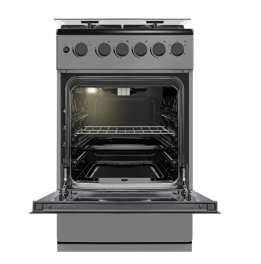 Управление плитой реализовано через классические поворотные регуляторы, которые обеспечивают точную настройку мощности конфорок. Такая система управления отличается интуитивной понятностью и надежностью. Для удобства хозяйки предусмотрен таймер, позволяющий своевременно контролировать процесс готовки и не допускать пережога продуктов. Варочная поверхность оснащена четырьмя газовыми горелками различной интенсивности нагрева. Это дает возможность использовать посуду разного размера и оптимально подбирать температурный режим для каждого блюда. Духовой шкаф также работает на газу, имеет объем 59 литров и предлагает две функции нагрева: стандартный режим и гриль. Внутренние стенки камеры покрыты специальной жаростойкой эмалью, которая упрощает очистку после использования. Особое внимание стоит уделить вместительному ящику, расположенному под духовкой. Он предназначен для хранения кухонной утвари, что делает использование плиты еще более комфортным. В комплекте поставляются решетка и противень для гриля, необходимые для полноценного приготовления.