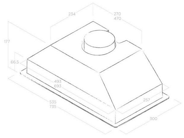 Стандартный отвод у вытяжек 100мм, также в комплектации есть переходник на 150 мм.