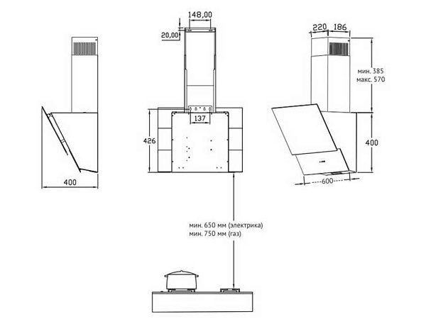 Стандартный отвод у вытяжек 100мм, также в комплектации есть переходник на 150 мм.