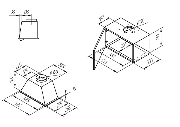 Стандартный отвод у вытяжек 100мм, также в комплектации есть переходник на 150 мм.