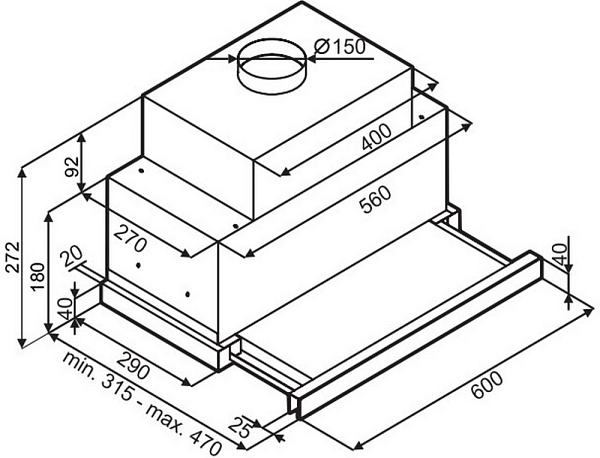 Стандартный отвод у вытяжек 100мм, также в комплектации есть переходник на 150 мм.