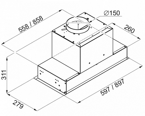 Стандартный отвод у вытяжек 100мм, также в комплектации есть переходник на 150 мм.
