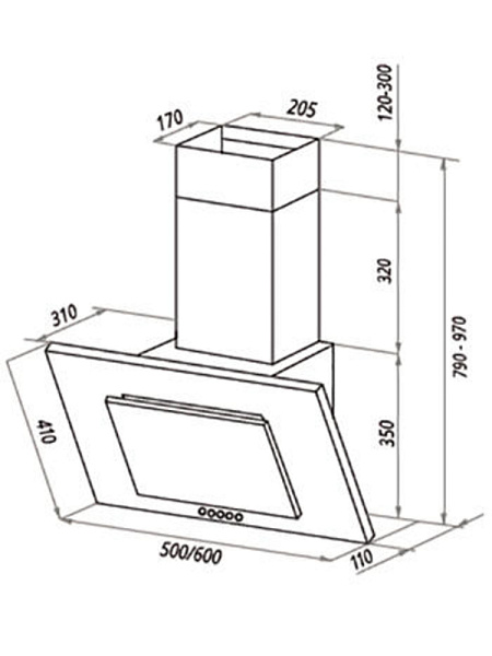 Прибор HOMSair BELL 50 оснащен тремя скоростями, плотным жировым фильтром и двумя LED-лампами по 1 Вт. Для улучшения качества работы можно дополнить оборудование угольным фильтром. Вытяжка весит 10.2 кг и обладает размерами 50x97x31 см.