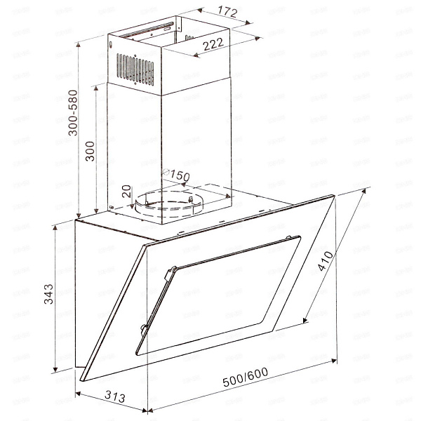 Стандартный отвод у вытяжек 100мм, также в комплектации есть переходник на 150 мм.