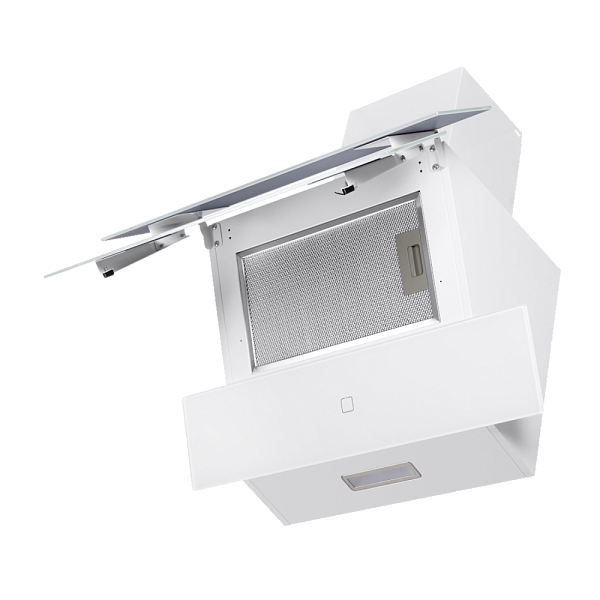 Алюминиевый фильтр находится за каскадом тонированных стекол, что придает вытяжке эстетический вид.