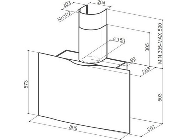 Стандартный отвод у вытяжек 100мм, также в комплектации есть переходник на 150 мм.