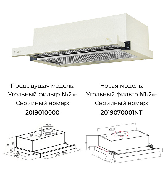 LEX HUBBLE 600 IVORY LIGHT вытяжка слоновая кость