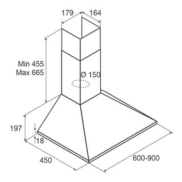 Стандартный отвод у вытяжек 100мм, также в комплектации есть переходник на 150 мм.