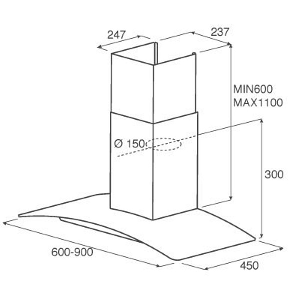 Стандартный отвод у вытяжек 100мм, также в комплектации есть переходник на 150 мм.