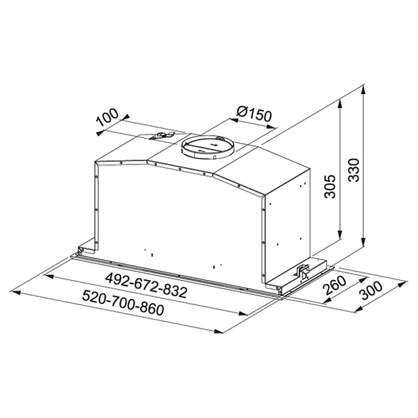 Стандартный отвод у вытяжек 100мм, также в комплектации есть переходник на 150 мм.