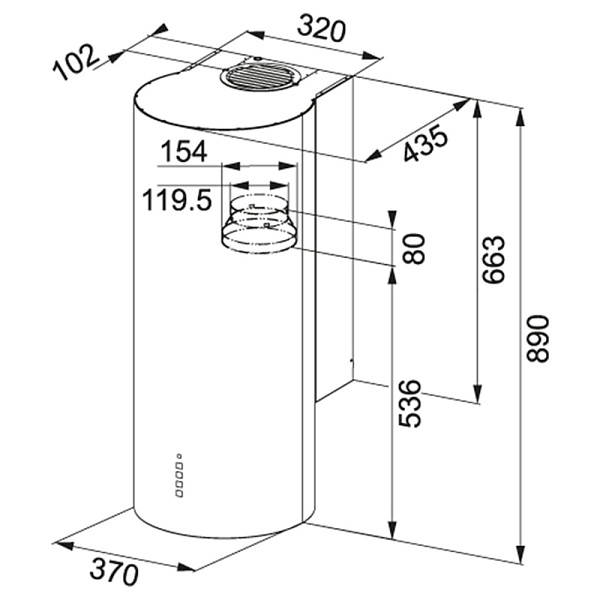 Стандартный отвод у вытяжек 100мм, также в комплектации есть переходник на 150 мм.