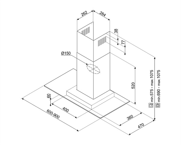 SMEG KBT600VE вытяжка нержавеющая сталь