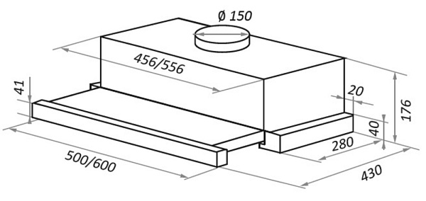 Стандартный отвод у вытяжек 100мм, также в комплектации есть переходник на 150 мм.