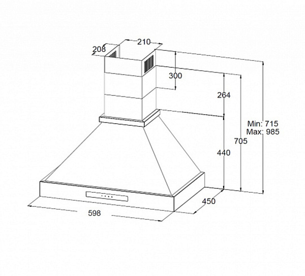 Стандартный отвод у вытяжек 100мм, также в комплектации есть переходник на 150 мм.