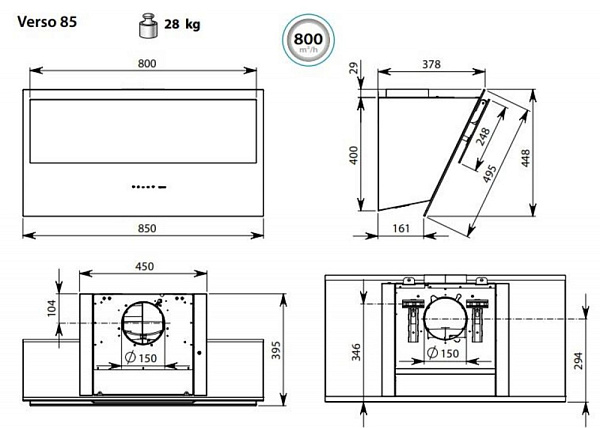 FALMEC DESIGN VERSO 85 VETRO BIANCO вытяжка белый