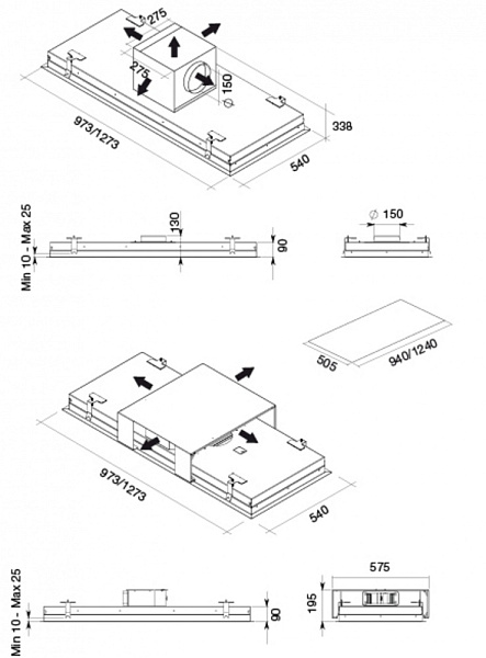 Slim версия KACL.782#49F (800 м³/ч) — плоская конструкция с минимальной высотой встраивания. Может работать в режиме рециркуляции через комплект KACL.939#BF.