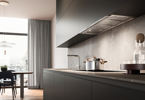 Плюсы: Система шумоподавления NRS способствует снижению уровня шума во время работы, что увеличивает комфорт использования. Максимальный уровень шума составляет всего 55 дБ. Жироулавливающие фильтры входят в комплект поставки.