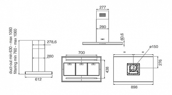 Стандартный отвод у вытяжек 100мм, также в комплектации есть переходник на 150 мм.