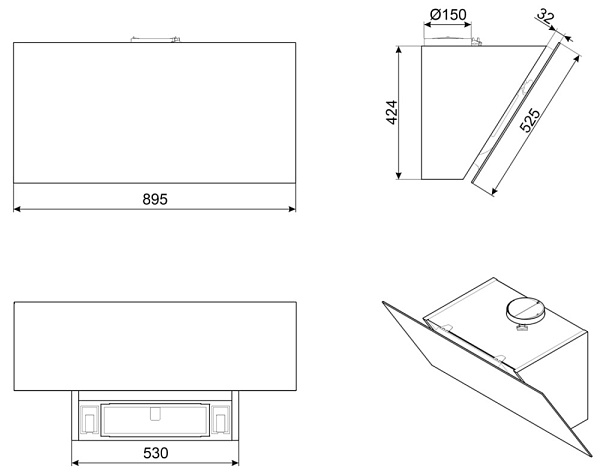 Стандартный отвод у вытяжек 100мм, также в комплектации есть переходник на 150 мм.