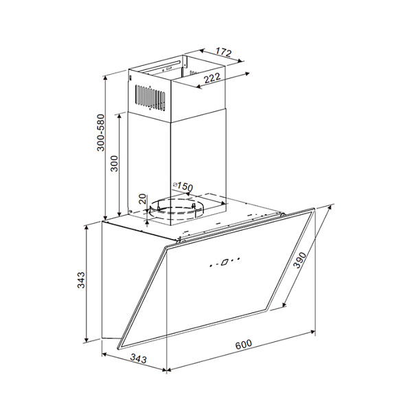 Стандартный отвод у вытяжек 100мм, также в комплектации есть переходник на 150 мм.