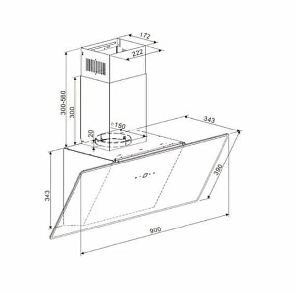 Стандартный отвод у вытяжек 100мм, также в комплектации есть переходник на 150 мм.