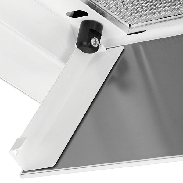 Управление осуществляется с помощью механических кнопок, а количество скоростей можно выбрать из трех вариантов. Благодаря производительности в режиме отвода воздуха 1200 м3/ч и режиму рециркуляции 750 м3/ч, вытяжка обеспечивает быстрое и эффективное очищение воздуха.