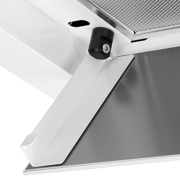 Корпус вытяжки выполнен из нержавеющей стали, а цветовое решение – белый, что позволяет вписать ее в любой интерьер.