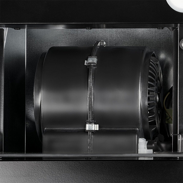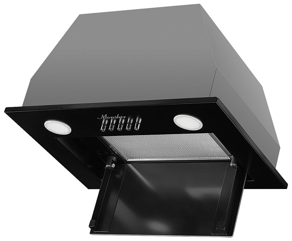Корпус вытяжки выполнен из нержавеющей стали, а цветовое решение – черный, что позволяет вписать ее в любой интерьер.