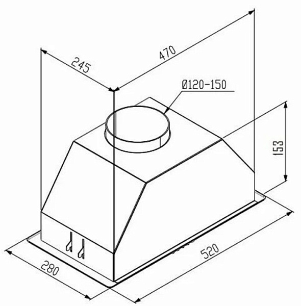 Стандартный отвод у вытяжек 100мм, также в комплектации есть переходник на 150 мм.