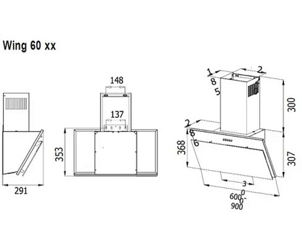 Оптимальная ширина вытяжки 60 см подойдет для встраивания над варочными панелями 45 или 60 см.