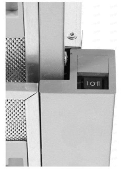 Два режима: умеренный и мощный – переключаются нажатием кнопок справа на панели управления. Вытяжка начнет работу в том режиме, в котором была выключена.