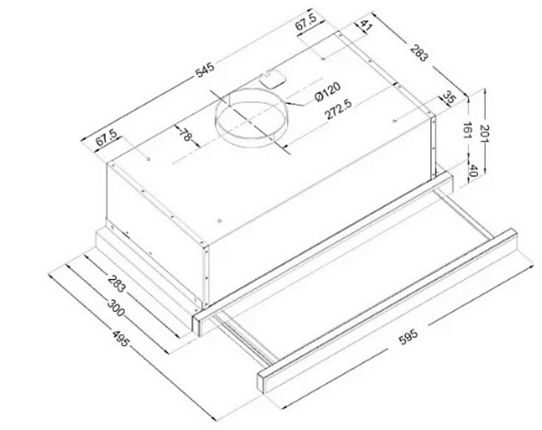 Ширина вытяжки 60 см соответствует стандартным полноразмерным варочным поверхностям.