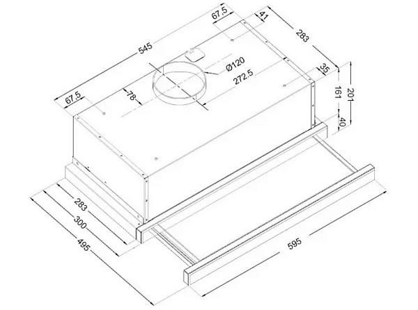 Ширина вытяжки 60 см соответствует стандартным полноразмерным варочным поверхностям.