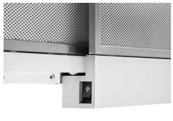 Два режима: умеренный и мощный – переключаются нажатием кнопок справа на панели управления. Вытяжка начнет работу в том режиме, в котором была выключена.