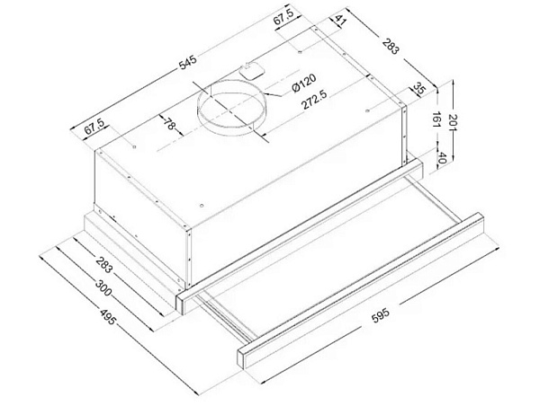 Ширина вытяжки 60 см соответствует стандартным полноразмерным варочным поверхностям.