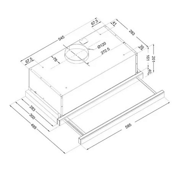Ширина вытяжки 60 см соответствует стандартным полноразмерным варочным поверхностям.