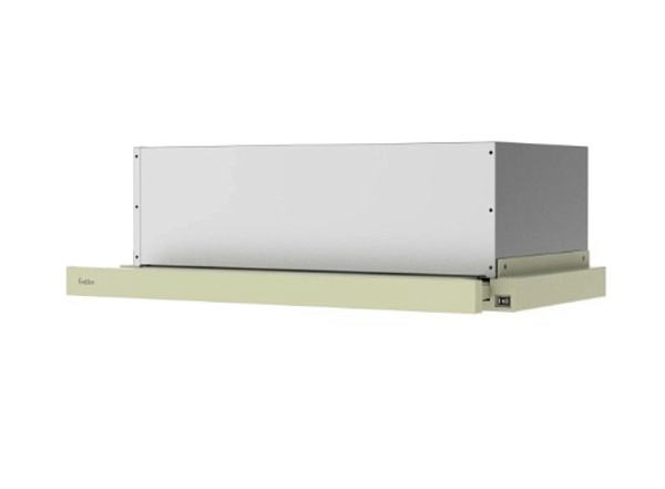Корпус вытяжки скрыт за фасадом настенного шкафа, а рабочая панель в классических цветах выдвигается только в процессе использования.