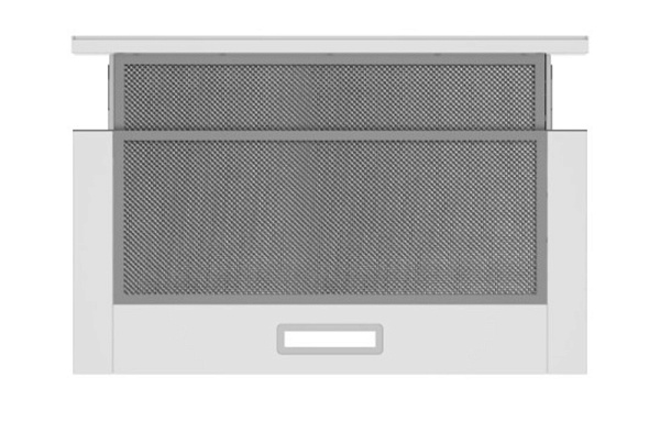 Встраиваемый монтаж с выдвижным экраном. Вытяжка данного типа монтируется в кухонный шкаф, имеет выдвижную панель, увеличивающая площадь забора воздуха и облегчает управление вытяжкой. При выдвижении панели вытяжка включается в том режиме, в котором вы ее выключили.